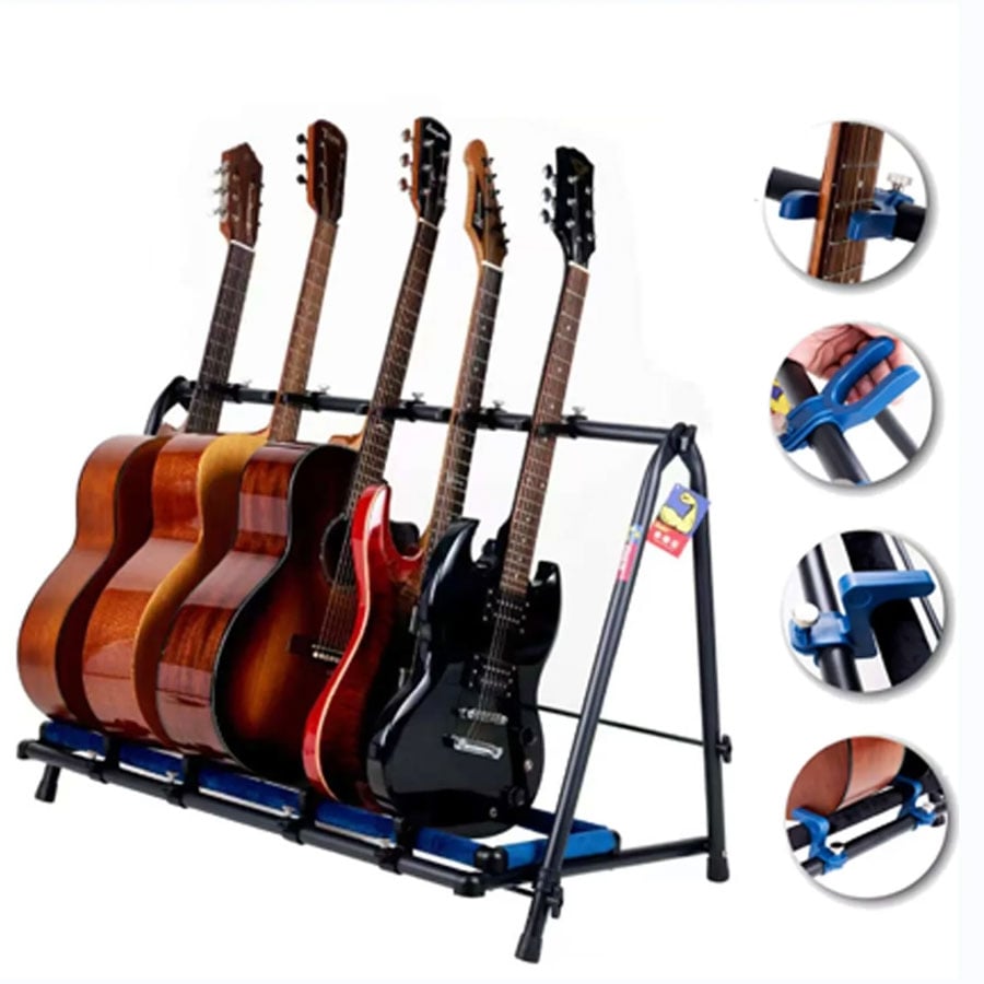 Keep your guitars safe, organized, and stylishly displayed with the Galux GS-231 Guitar Rack. Designed to hold up to five guitars, this rack features a durable metal frame paired with plush blue velvet padding to protect your instruments from scratches and dings. The soft velvet lining cradles both acoustic and electric guitars securely, while the stable base ensures your collection stays upright and protected.