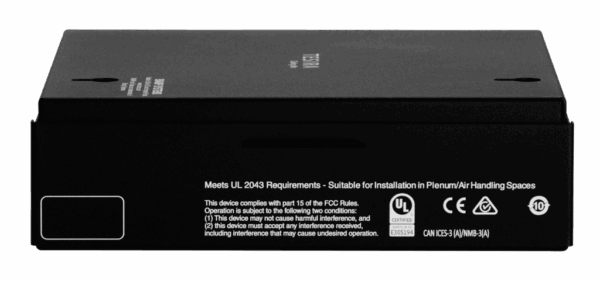 Certifications | FCC Part 15B (USA) CE marked (Europe) UL and C-UL listed (USA and Canada) RoHS Directive (Europe) Evaluated to the requirements of UL 2043 and is suitable for use in air handling spaces |