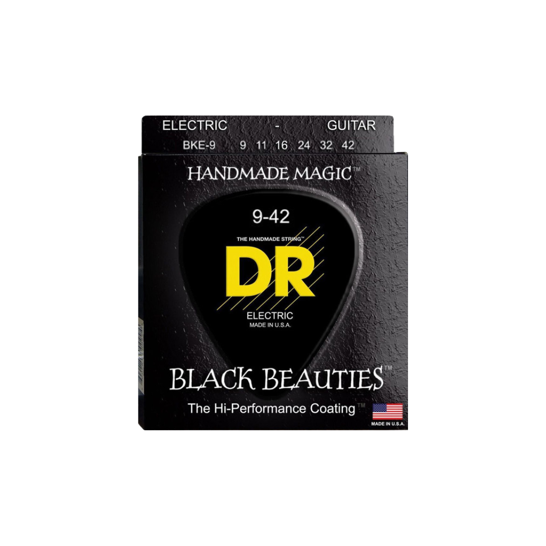 Black Beauties™ coloured acoustic guitar strings aren’t just about the sleek and sophisticated look. They feature a phosphor bronze wrap wire on a hex core to maintain brightness and feel. All strings in the set have a jet-black version of DR Strings’ K3™ ultra-hard coating. Players tell us these strings have a longer life, more projection, greater clarity, better articulation, and fewer unwanted overtones than uncoated strings.