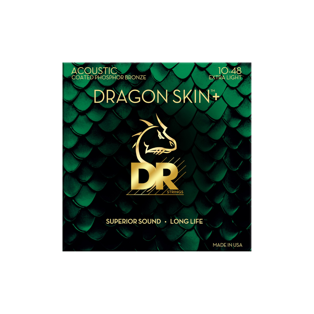 DR Strings DAP-10 Dragon Skin+ Coated Phosphor Bronze Acoustic Guitar Strings, Extra Light, 10-48
