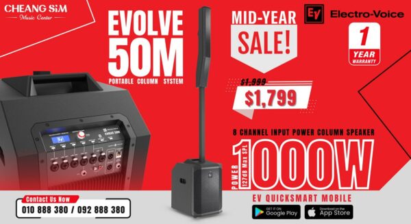 The EVOLVE 50M combines state-of-the-art industrial design, superior Electro-Voice-engineered components and premium materials to deliver best-in-class sound quality, power and reliability.