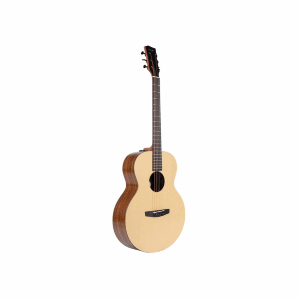 The Enya EA X0/SP1 EQ is a beginner-friendly acoustic guitar, blending quality materials with modern technology. Its 41-inch Auditorium body, crafted from HPL European Spruce and Koa, provides a rich tone. The SP1 AcousticPlus® 2.0 system features built-in effects—reverb, delay, and auto-wah—that work even unplugged. A simple button press lets you switch between sound modes for an enhanced experience. It also includes a built-in mic, tuner, custom strings, a durable gig bag, and amp cable, making it an excellent choice for new players.