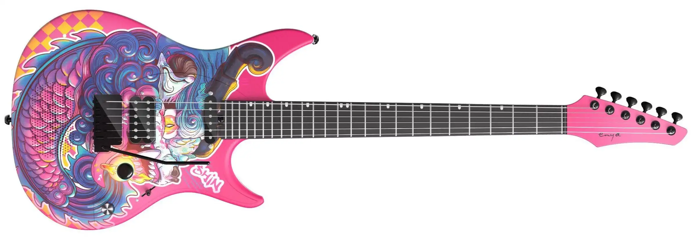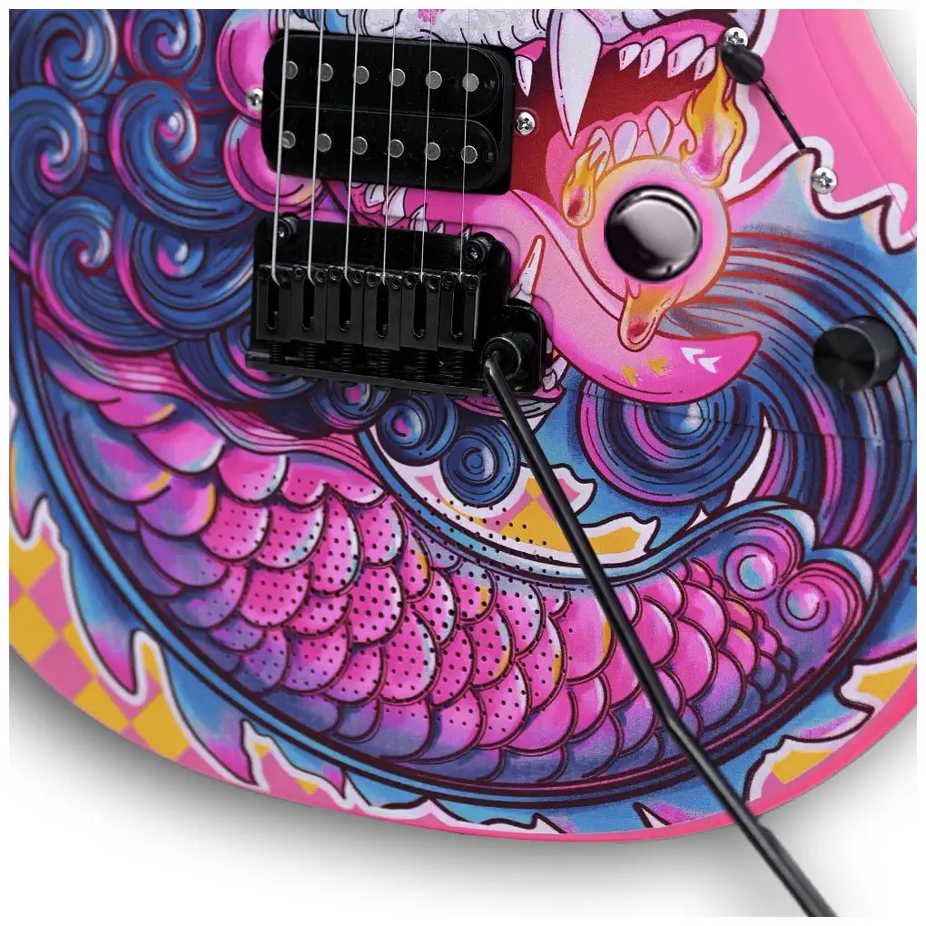 Inspire – Loong Flame is an electric smart guitar from musical instrument manufacturer Enya Music. It combines durable materials, innovative design and fully integrated electronics including a built-in 15W speaker, effects and connection to a mobile app. The Enya Inspire has an asymmetrical neck for a more comfortable grip, a fingerboard radius (16 “), 24 round nickel frets, a zero fret for stable tuning and a scale length of 24.75 “. The result is an instrument that is ready for everyday play – at home, outdoors and on the go – without the need to drag.