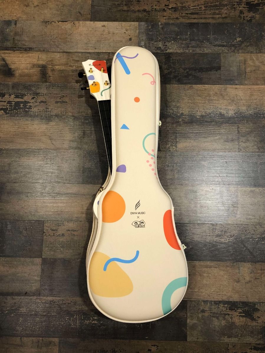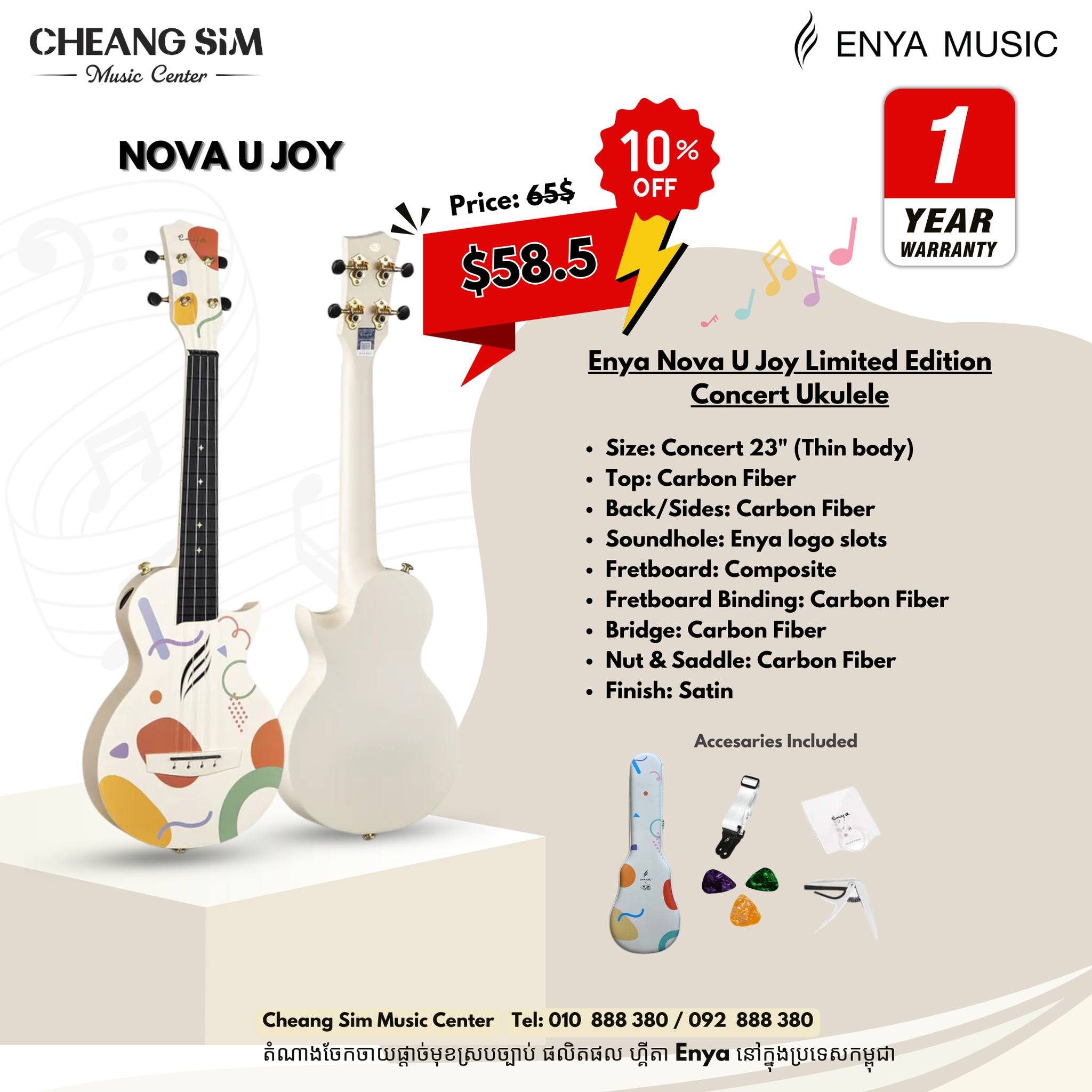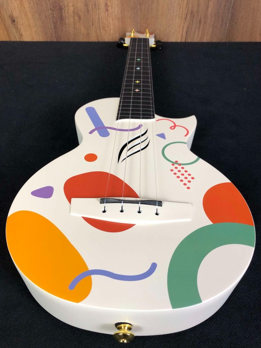 Specificaion: Concert size 30% carbon fiber and 70% polycarbonate body, neck and bridge Satin finish Lightweight design Cutaway Gold hardware with colour matching Radius fingerboard 35mm nut width Strap, capo, spare strings and clamshell case included