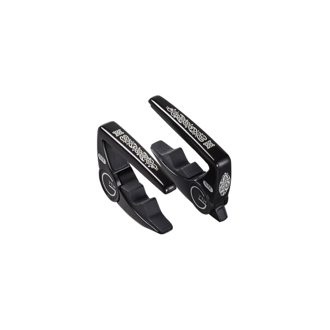 In celebration of this music, G7th asked acclaimed Celtic artist, Patrick Gallagher, to design a motif around the themes of treble and bass clefs for engraving onto the rear and top bar of our capos, now available on the Silver Performance 3 Capo.