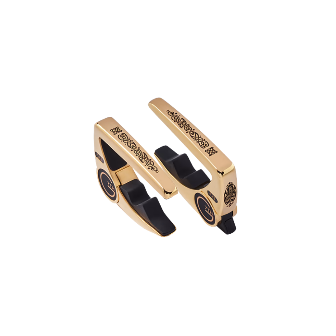 In celebration of this music, G7th asked acclaimed Celtic artist, Patrick Gallagher, to design a motif around the themes of treble and bass clefs for engraving onto the rear and top bar of our capos, now available on the 18kt Gold Plate Performance 3 Capo.
