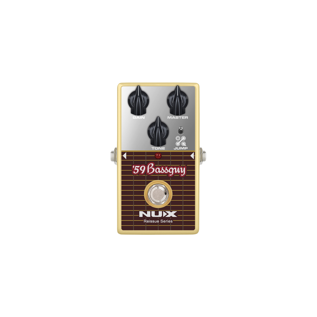 The Nux ’59 Bassguy is a stompbox pedal from the Nux Reissue series that emulates the sound and character of a classic 1959 Fender Bassman amplifier. It is designed as an “amp in a box” and functions as both an overdrive and a preamp pedal, providing tones ranging from warm cleans to overdriven crunch.