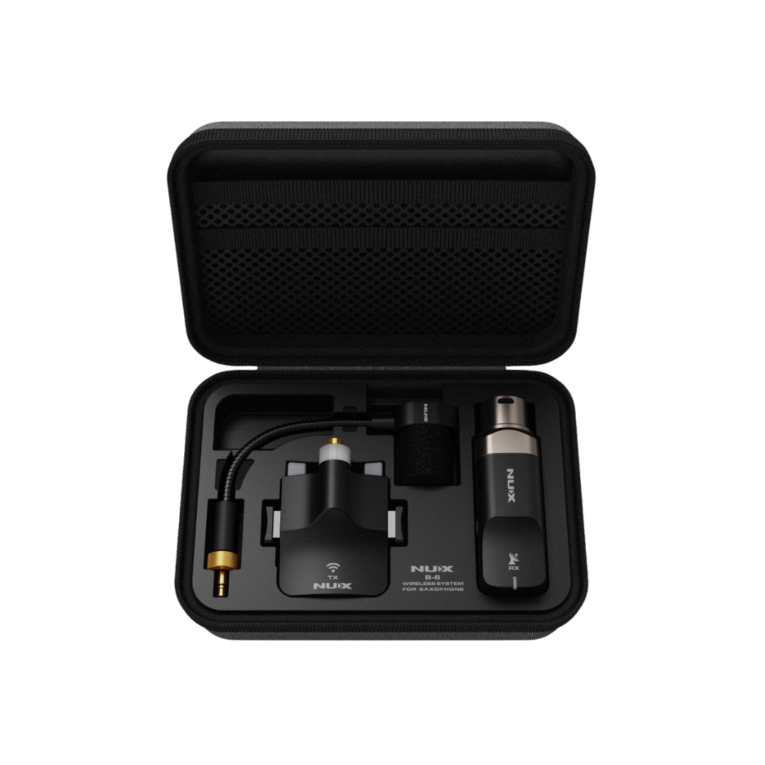 The NUX B-6 wireless system allows the Saxophone players to move freely on stage without being tethered to a microphone stand. With an operation range of 20 meters, the NUX B-6 wireless system for Saxophone can significantly improve your performance convenience.
