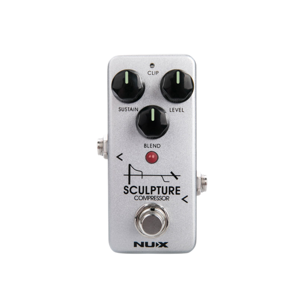 NUX Sculpture Compressor pedal offers a consistent volume output level and sharpens the signals on top and bottom edges. When you start picking your guitar, it will clean the loud (peak) notes and increase the sustain by raising the level of decaying (quiet) notes. Sculpture also contributes to the signal foundation that’s fed into the rest of your effects chain.