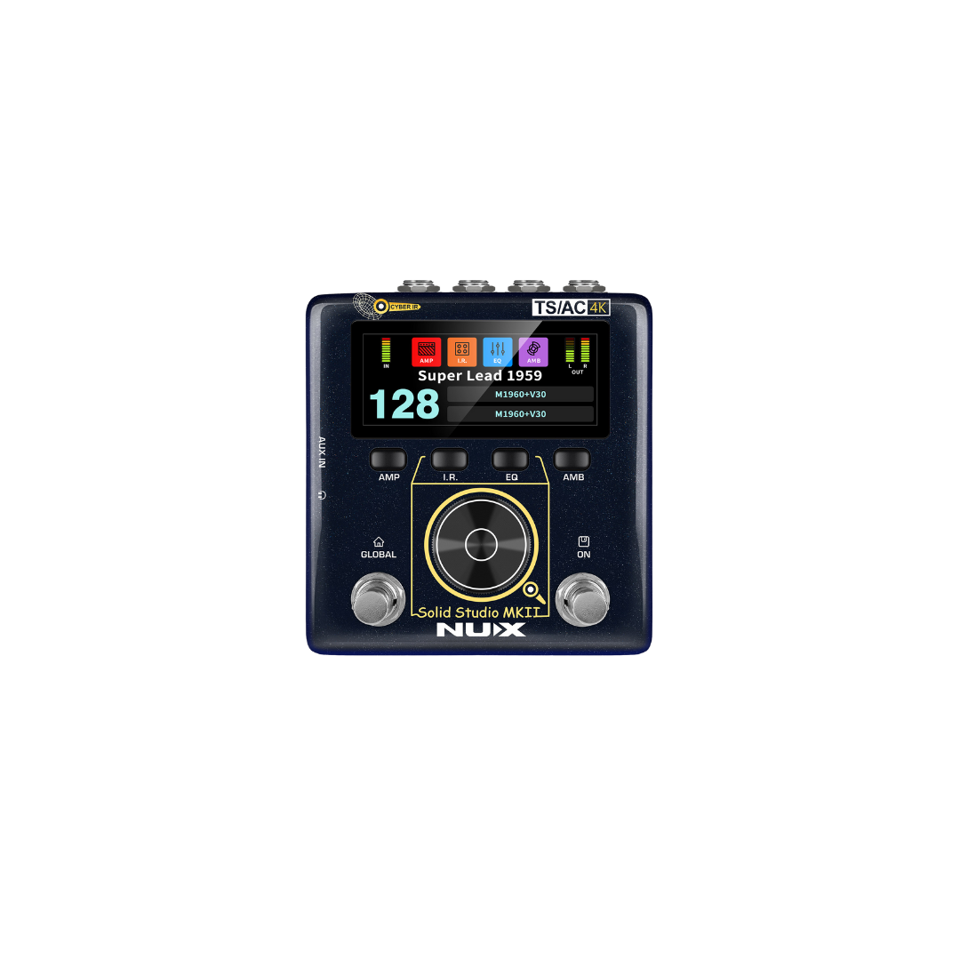 The Nux NSS-6 Solid Studio MKII is an advanced preamp, power amp simulator, and impulse response (IR) loader pedal. This device is designed for guitar and bass players who want to go “amp-less,” allowing them to connect directly to a PA system, a mixing console, or a recording interface while still having the sound of a miked-up amplifier and cabinet. The MKII version builds upon the original with a new color LCD screen, enhanced amp modeling, and other features.