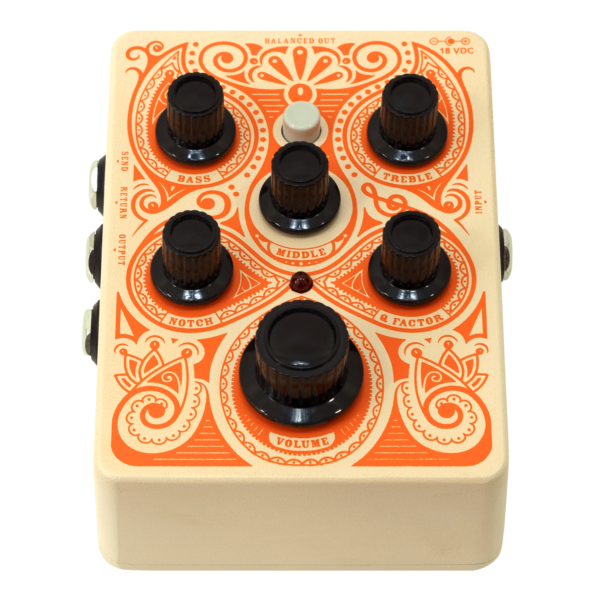 The Acoustic Pedal uses a single-ended JFET circuit design to guarantee insanely low levels of background noise. No hiss, even with the Treble control maxed! Super-high headroom comes courtesy of the 18V power supply, guaranteeing the cleanest, clearest acoustic tone we could give you.
