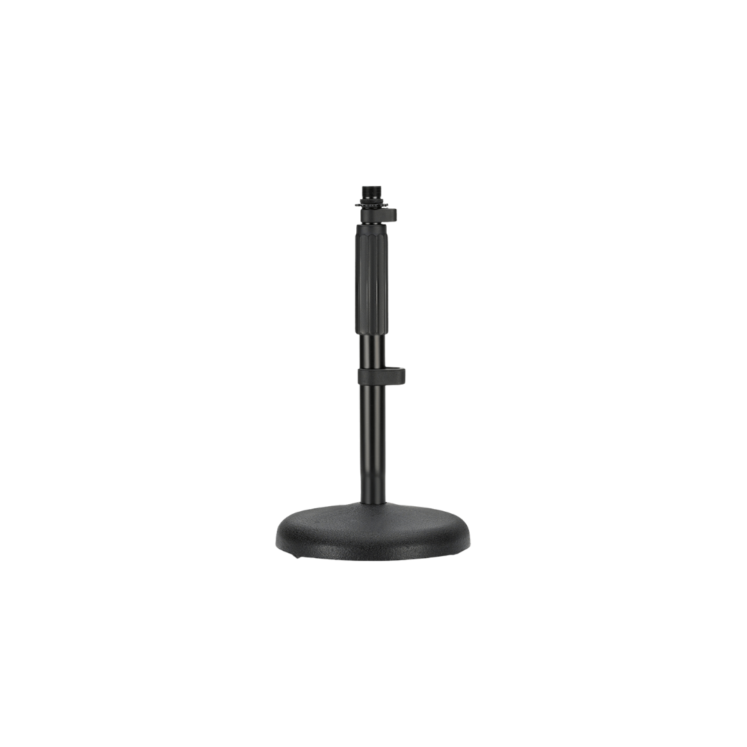 The DS1 is a high-quality desktop microphone stand that allows for optimal microphone placement when podcasting, broadcasting or livestreaming. The all-metal construction includes a heavy base for stability, and a height adjustment system for maximum flexibility.
