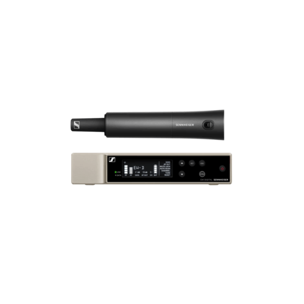 Base Set for digital wireless applications featuring stationary receiver and handheld transmitter for use with a wide range of Evolution Wireless Digital microphone heads.