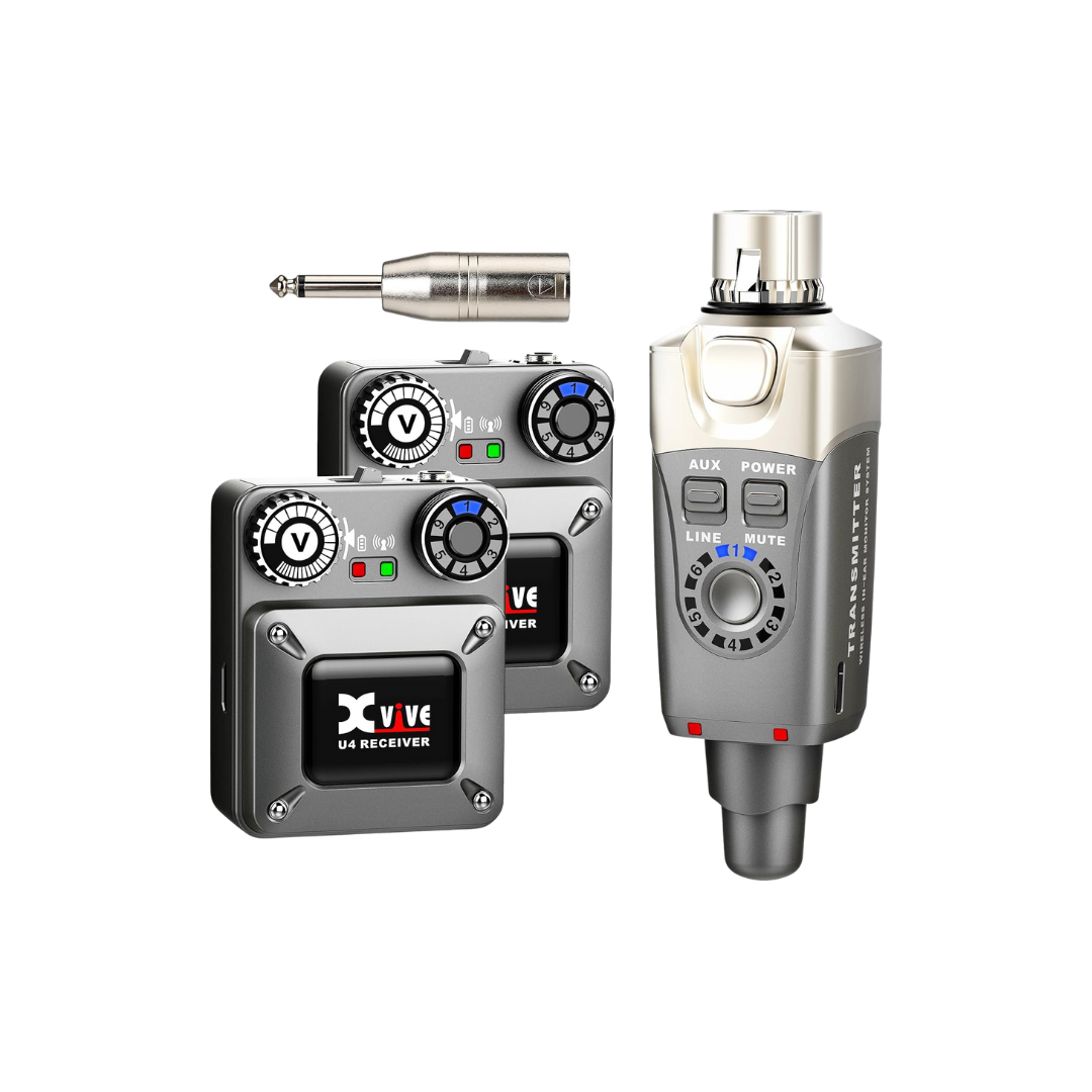 Xvive U4R2 Wireless in-Ear Monitor System Professional IEM System 1 Transmitter and 2 Beltpack Receiver for Studio, Band Rehearsal, Live Performance (U4R2)