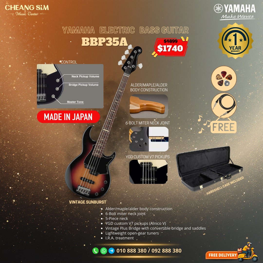 YAMAHA BBP35A VINTAGE SUNBURST 5-STRING ELECTRIC BASS GUITAR