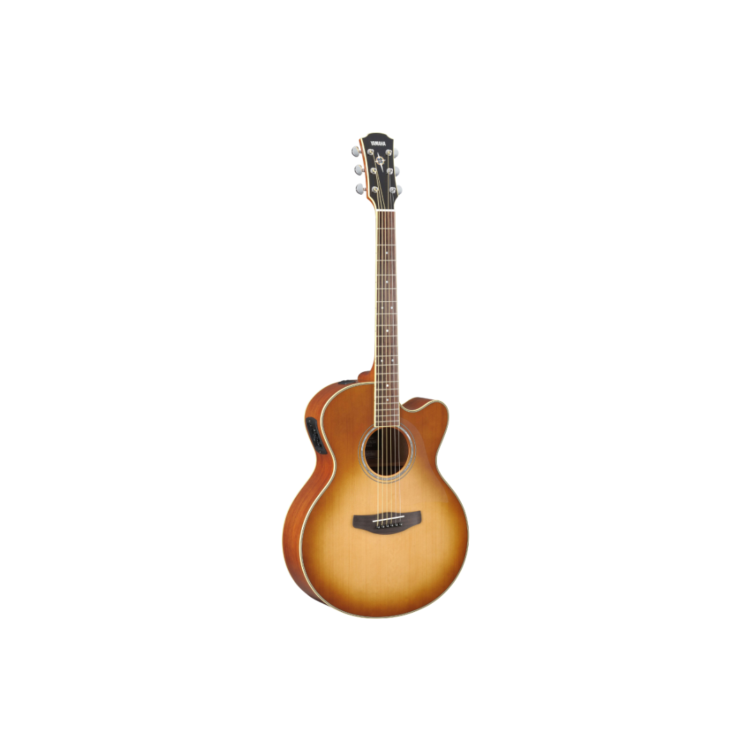 The Yamaha CPX700II SB is a 6-string acoustic-electric guitar with a sand burst finish, featuring a medium-jumbo cutaway body for a powerful sound and an A.R.T. pickup system for natural amplified tone.