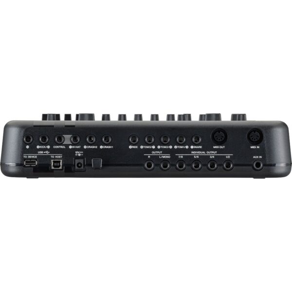 Trigger Input | Trigger input jack ×10 (standard stereo phone jack, not including the HI-HAT CONTROL jack. 1, 14 for all types of pads: 2, 4, 6 for 2-zone; 8, 9, 10 for 3-zone; 11 dedicated for hi-hat pad/controller; 12 for kick, 2-zone) *If other pad is connected to each of the above terminals, it will operate as a 1-zone pad. *Maximum of 14 pads can be connected (when Y-cable is used) | |