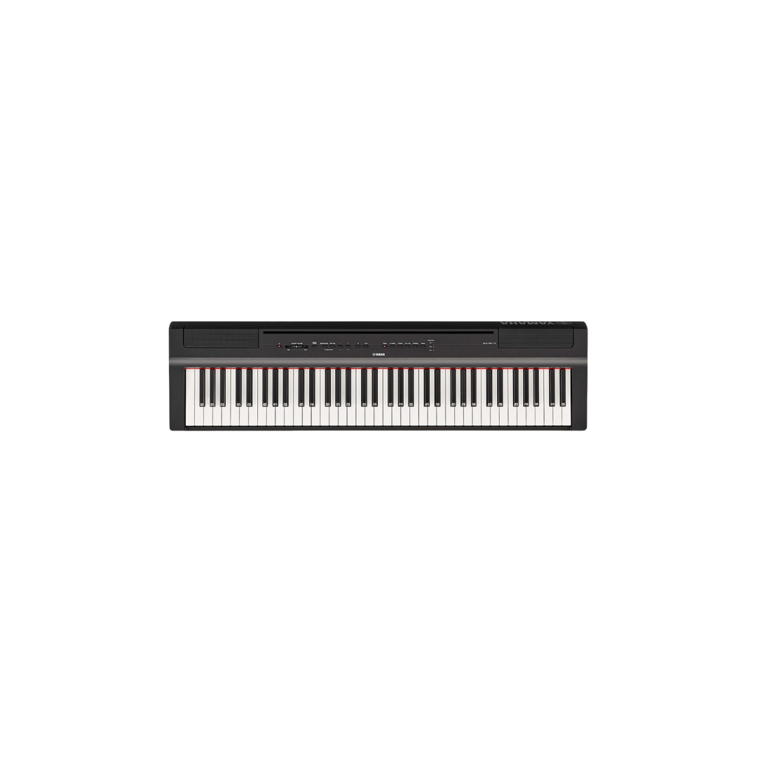 The Yamaha P-121 Black is a compact and portable digital piano that is nearly identical to the P-125 model, but features a keyboard instead of 88 keys. It is known for its authentic piano sound, drawing from the Yamaha CFIIIS concert grand, and is a popular choice for musicians needing a lightweight instrument for gigging, practice, or use in smaller spaces.
