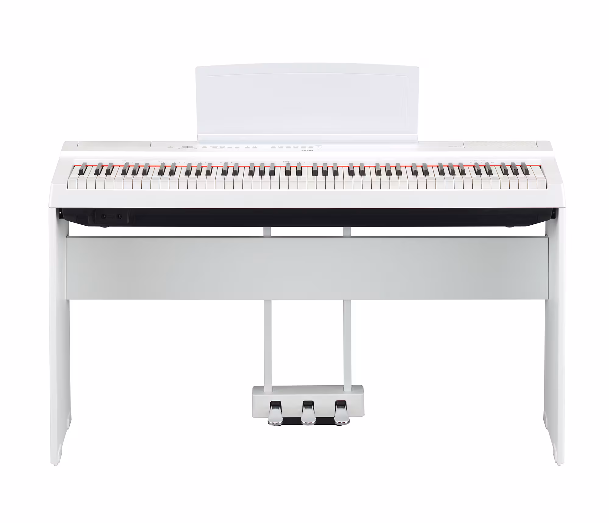 The Yamaha P-125 (model P-125WH for white) offers a realistic playing experience and a variety of features in a portable design.