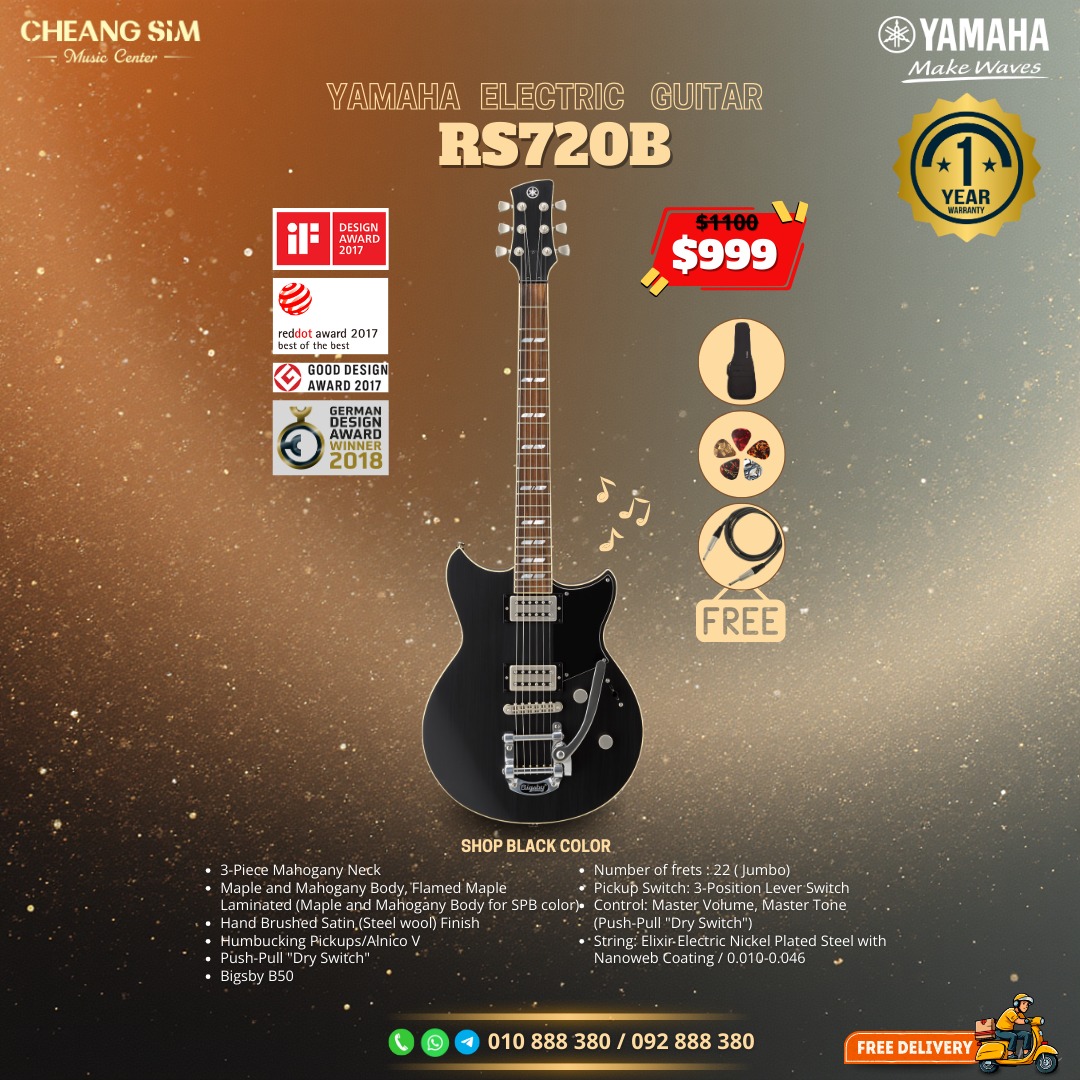 Clarity and resonance are the prominent priorities in the Yamaha Revstar RS720B, and with a streamlined design and stylish presentation, it stands out on any stage or in any collection. The Yamaha Revstar RS720B achieves a distinguished place in the electric guitar landscape for its innovative technology and design. A pair of VT5 Alnico V Humbucker pickups captures clear and powerful tones that are seamlessly noiseless and responsively low-output. The room-filling tones of the humbucking pickups can be quickly altered with a push-pull dry switch to engage high frequencies and give a single-coil snap to the humbucking pickups. Resonant tones are enhanced by the mahogany neck that is set directly into the mahogany body. The innovative design choices fulfilled with the Yamaha Revstar RS720B create impressive tones and are strikingly clear and endlessly resonant. Impressively outfitted for a modern playing experience, the Yamaha Revstar delivers on multiple fronts for a fulfilling playing experience.