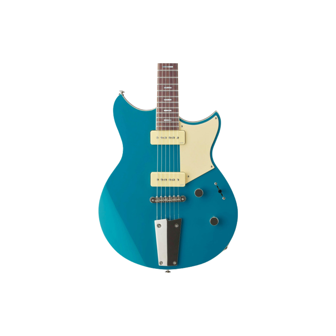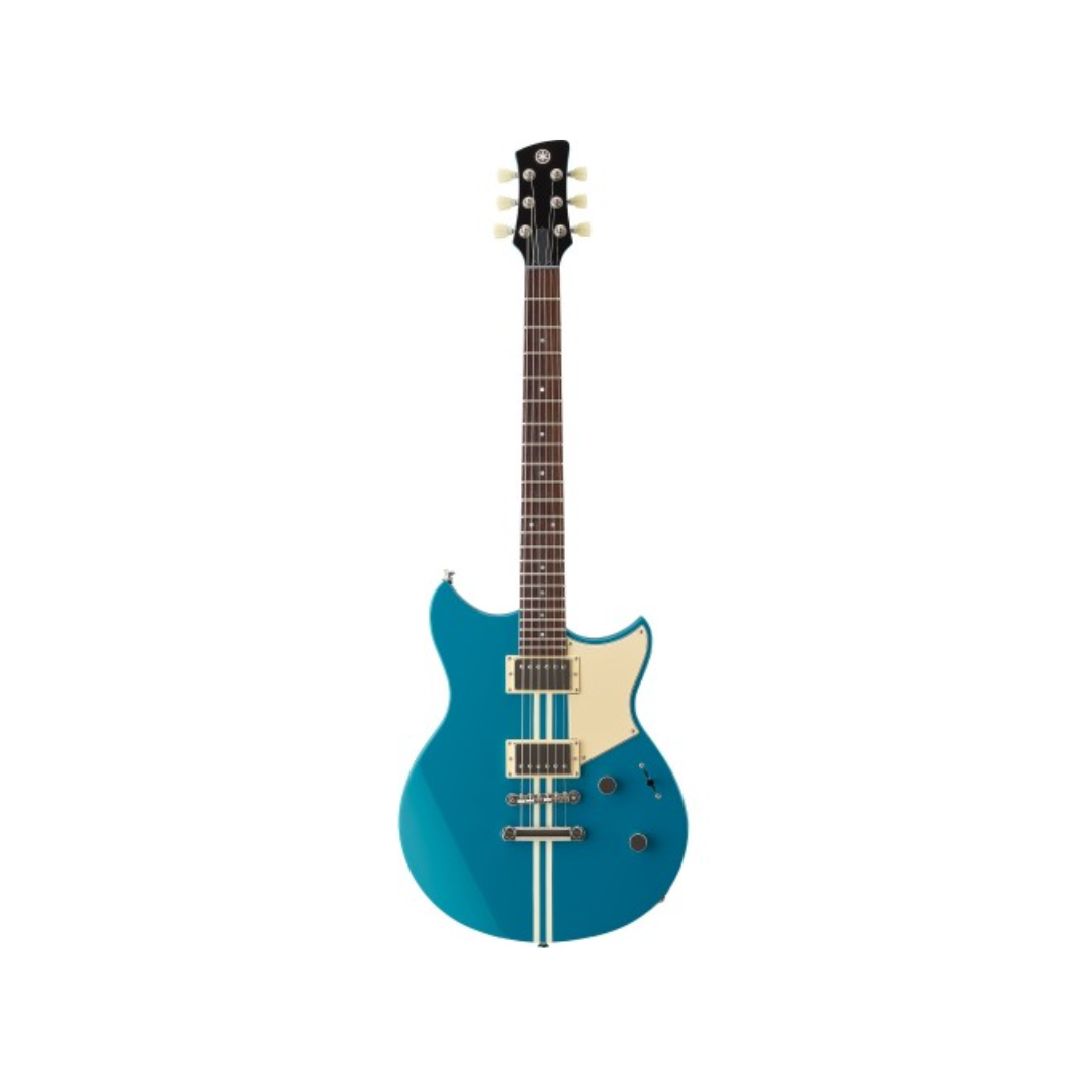 The Yamaha Revstar Element RSE20 in Swift Blue is an electric guitar featuring a café racer-inspired design with a lightweight, chambered mahogany body. The guitar is known for its versatility and clear, punchy tone.