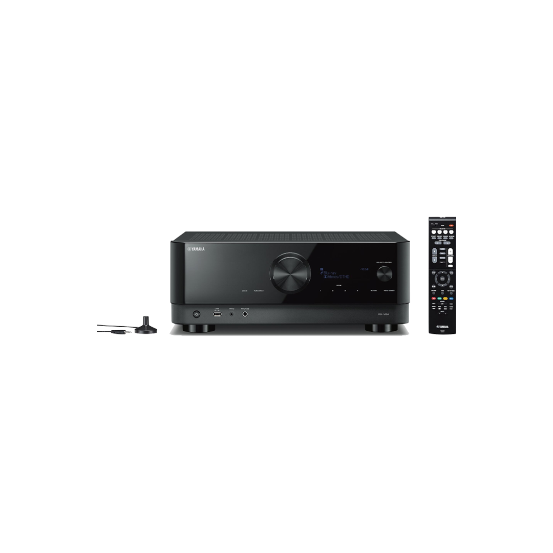 The Yamaha RX-V6A in black is a 7.2-channel network AV receiver that supports 8K HDMI, Dolby Atmos, and DTS:X, and is available for purchase from various online retailers.