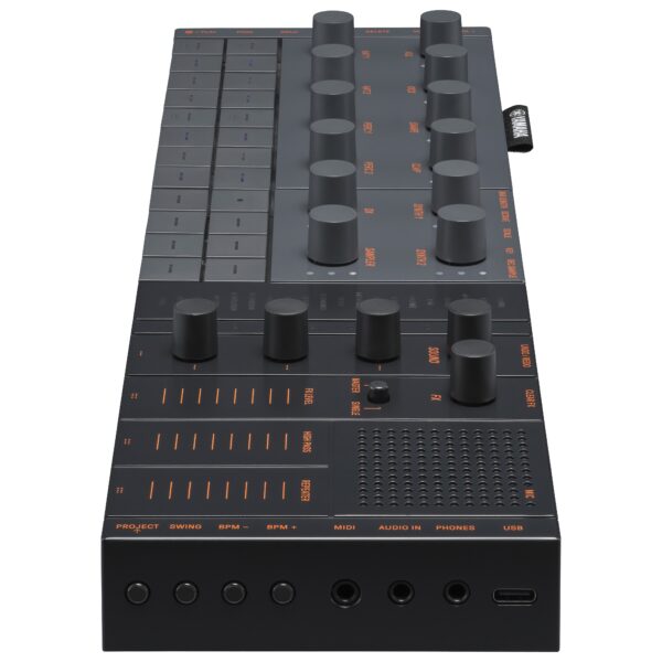 The Yamaha SEQTRAK Orange is a mobile music ideastation combining a sequencer, drum machine, sampler, and synthesizer in a single portable device. It is also available in a black finish.