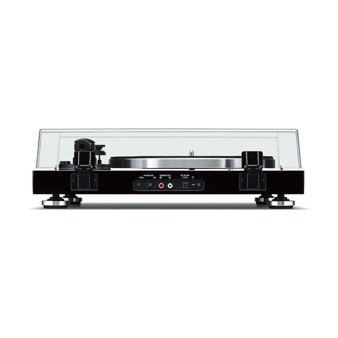 Enter a world of vinyl with the Yamaha TT-S303 turntable. The straight tonearm and rigid body deliver authentic sound from old and new vinyl collections.