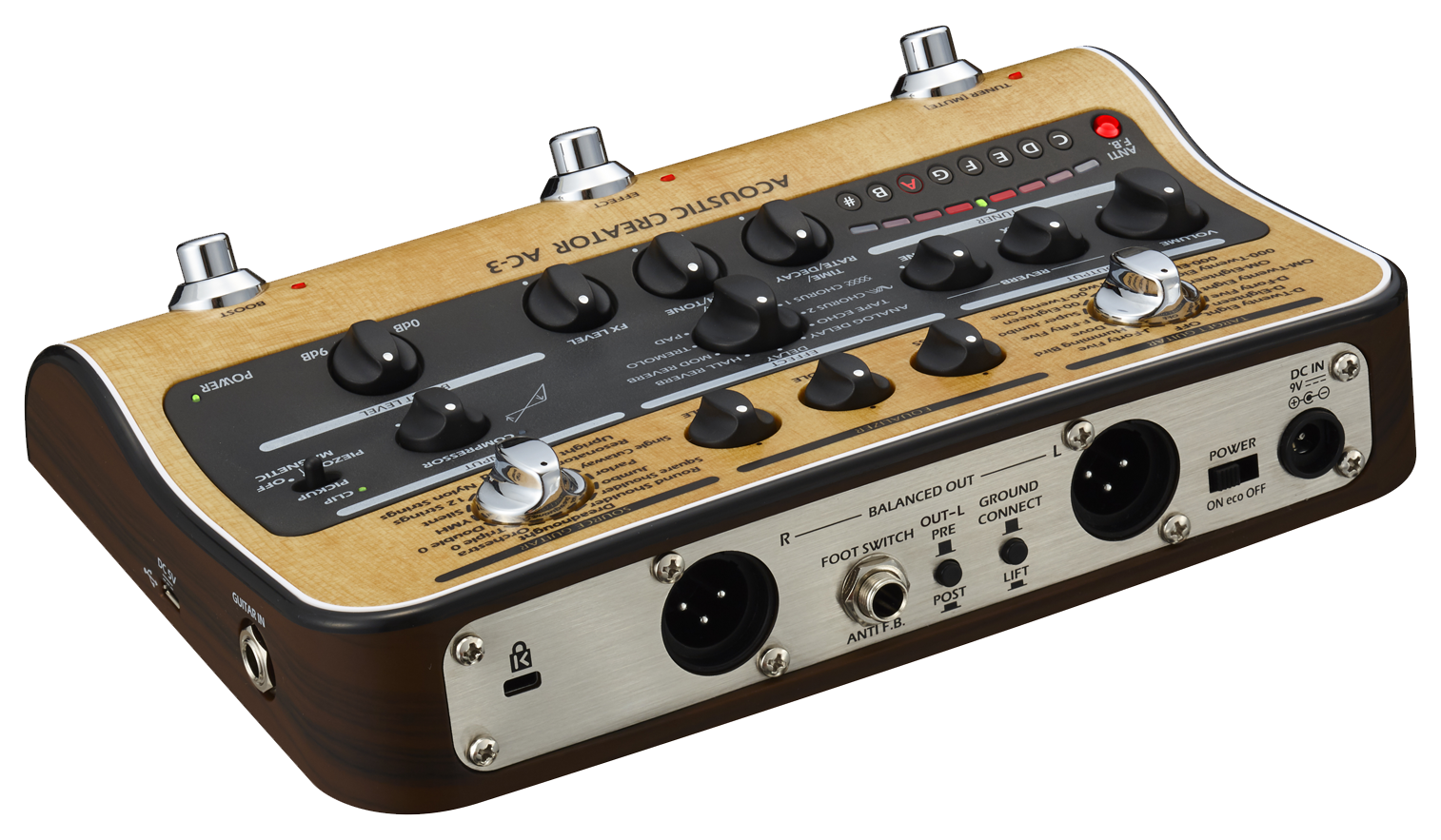 Like its little brother, the AC-3 Acoustic Creator is an enhanced direct box with essential DI features that help you achieve great tone no matter where you play. The AC-3 is equipped with an effects generator, stereo outputs, and a compressor. With these features plus the same high-quality preamp and 3-band EQ as the AC-2, the AC-3 is an all-in-one acoustic toolkit that’s perfect for live performance and studio.