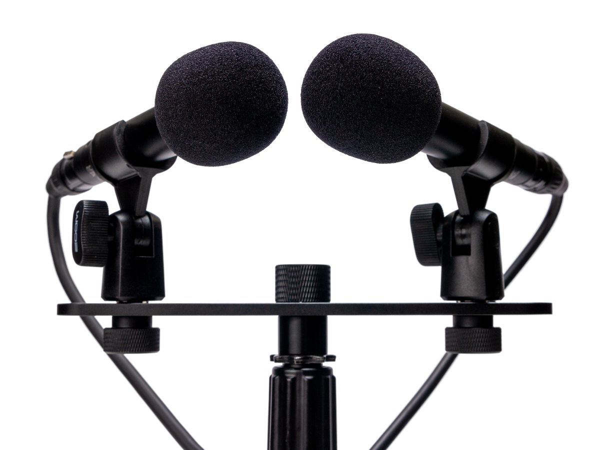 Windscreens, mic holders, screw adapters and carrying pouches included
